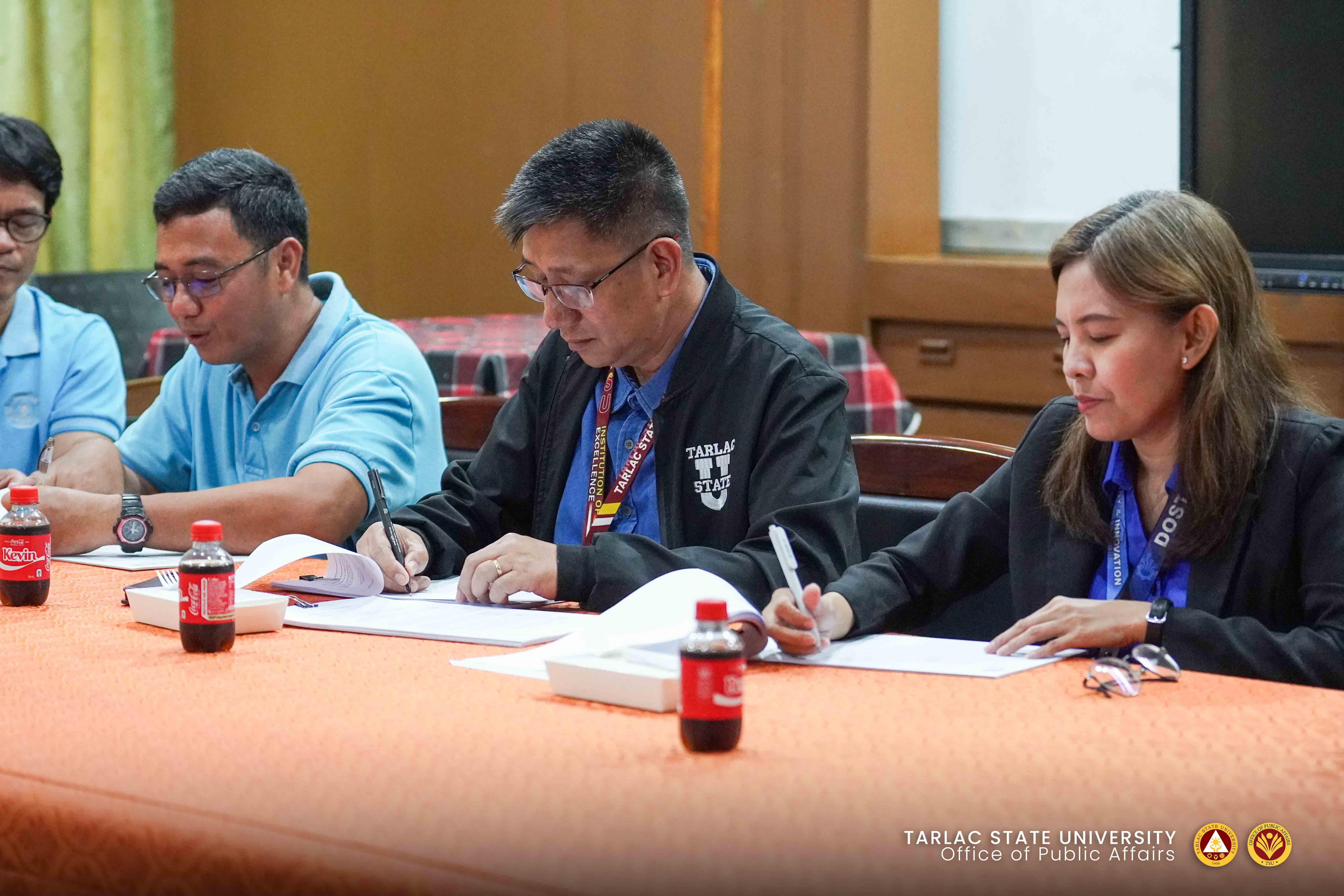 Present during the MOA signing are TSU president Dr. Arnold E. Velasco, Vice President for Research, Innovation, and Extension Atty. Wilmark J. Ramos, and DOST Provincial Science and Technology Director Ms. Karen Danez.